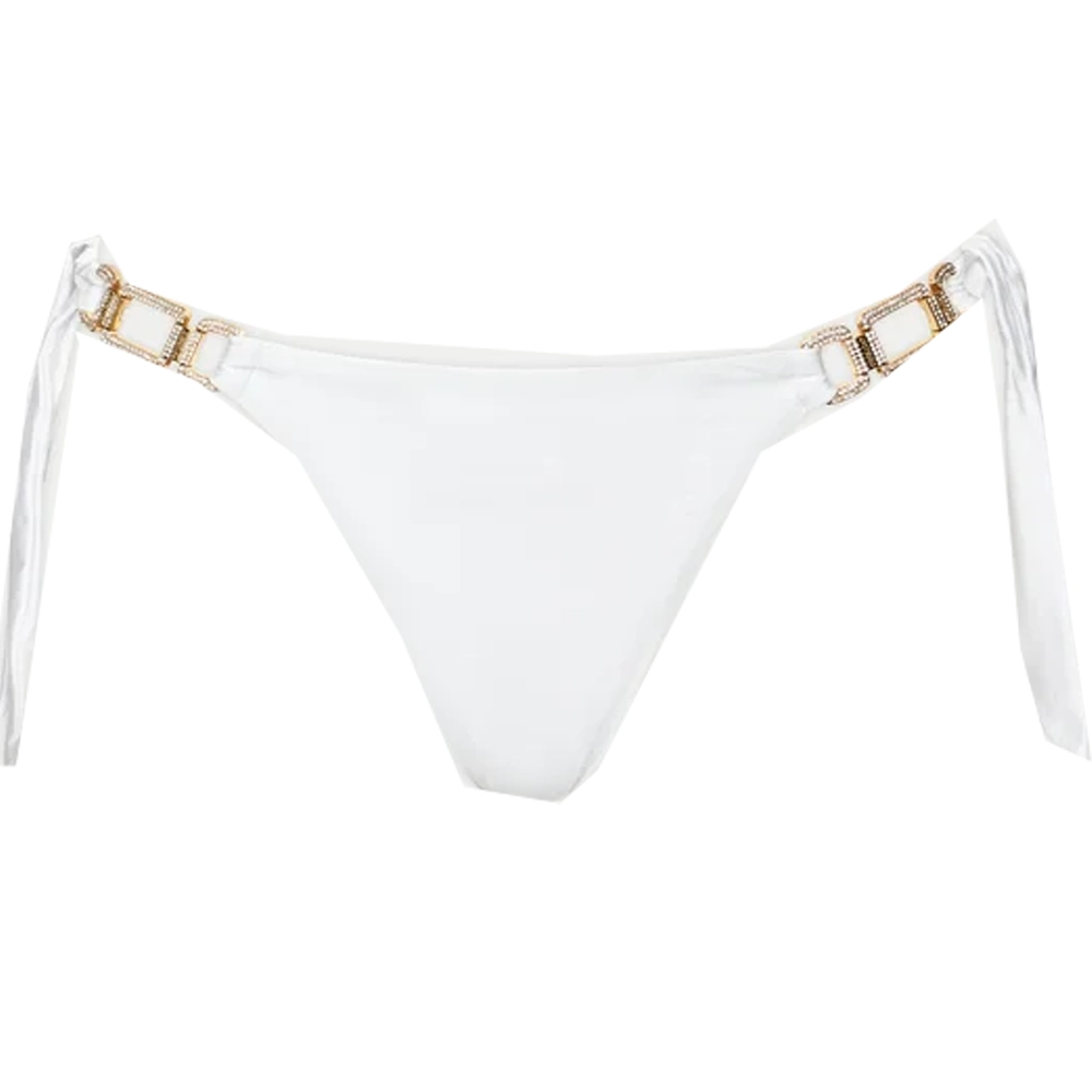 Esplora l’essenza della moda balneare con gli slip costume da donna Guess, un capo che incarna eleganza e stile senza tempo. Questi slip presentano un design raffinato, arricchito da dettagli luminosi di ganci in color oro e pailettes, che catturano l’attenzione e conferiscono un tocco di lusso al tuo look da spiaggia.