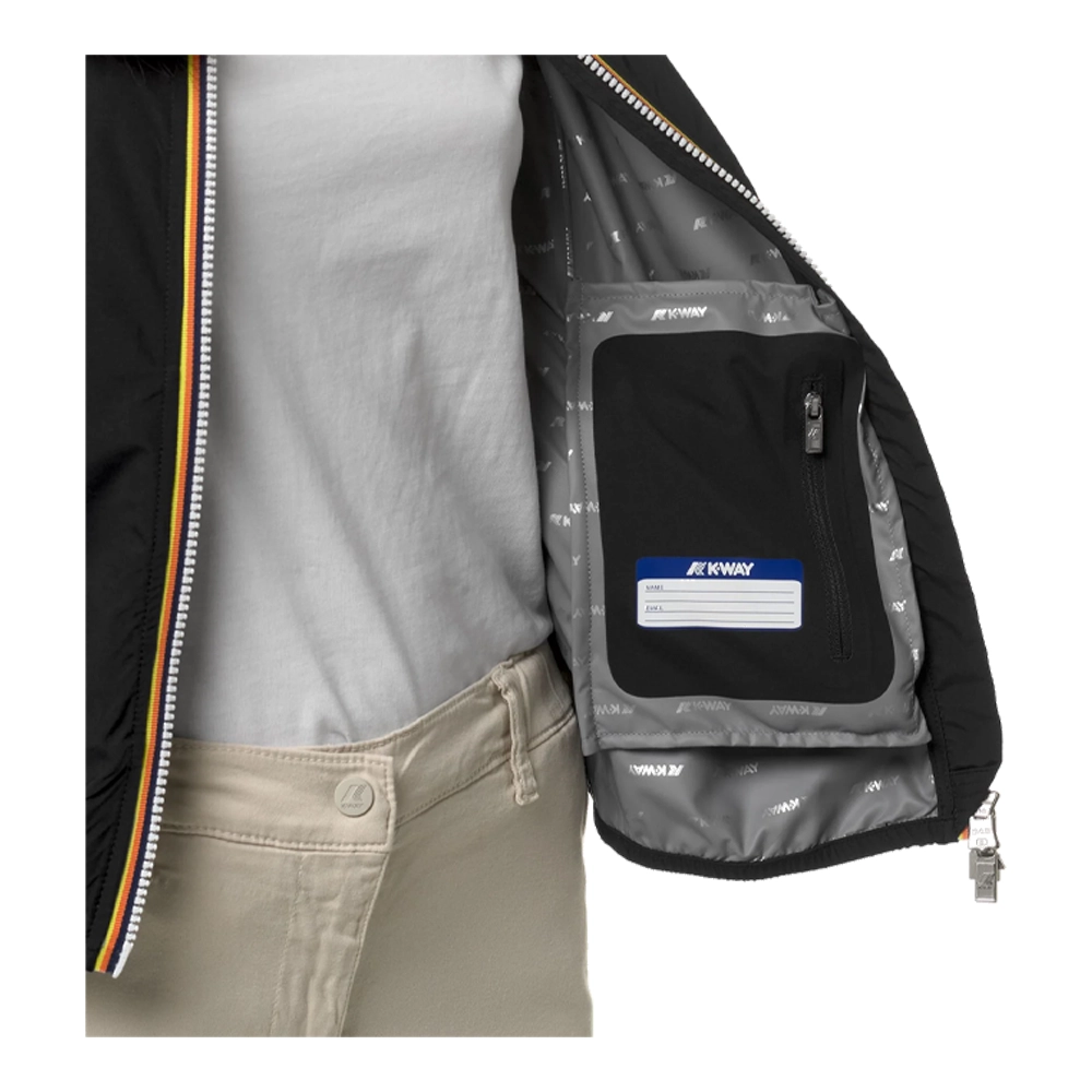 L’interno della giacca è foderato con una membrana isolante decorata con lettering K-Way stampato all over in tonalità argento. Questa membrana non solo ti tiene al caldo nelle giornate più fresche, ma contribuisce anche a mantenere una temperatura corporea ottimale durante le tue avventure all’aperto.