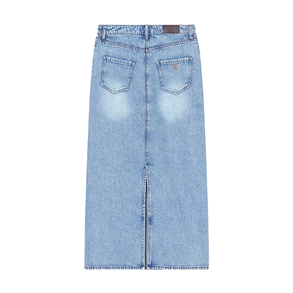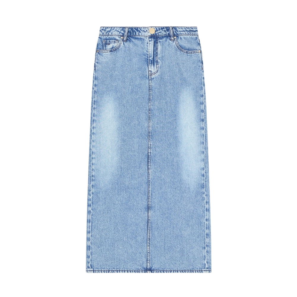 Una sinfonia di denim leggero che danza ad ogni passo. Questa gonna lunga, in un delicato azzurro cielo, evoca la spensieratezza delle giornate estive. Il tessuto rigido in cotone lyocell dona struttura e movimento, creando una silhouette fluida e femminile. Immagina di indossarla al tramonto, mentre la brezza marina accarezza il tessuto, regalandoti un’eleganza senza tempo.