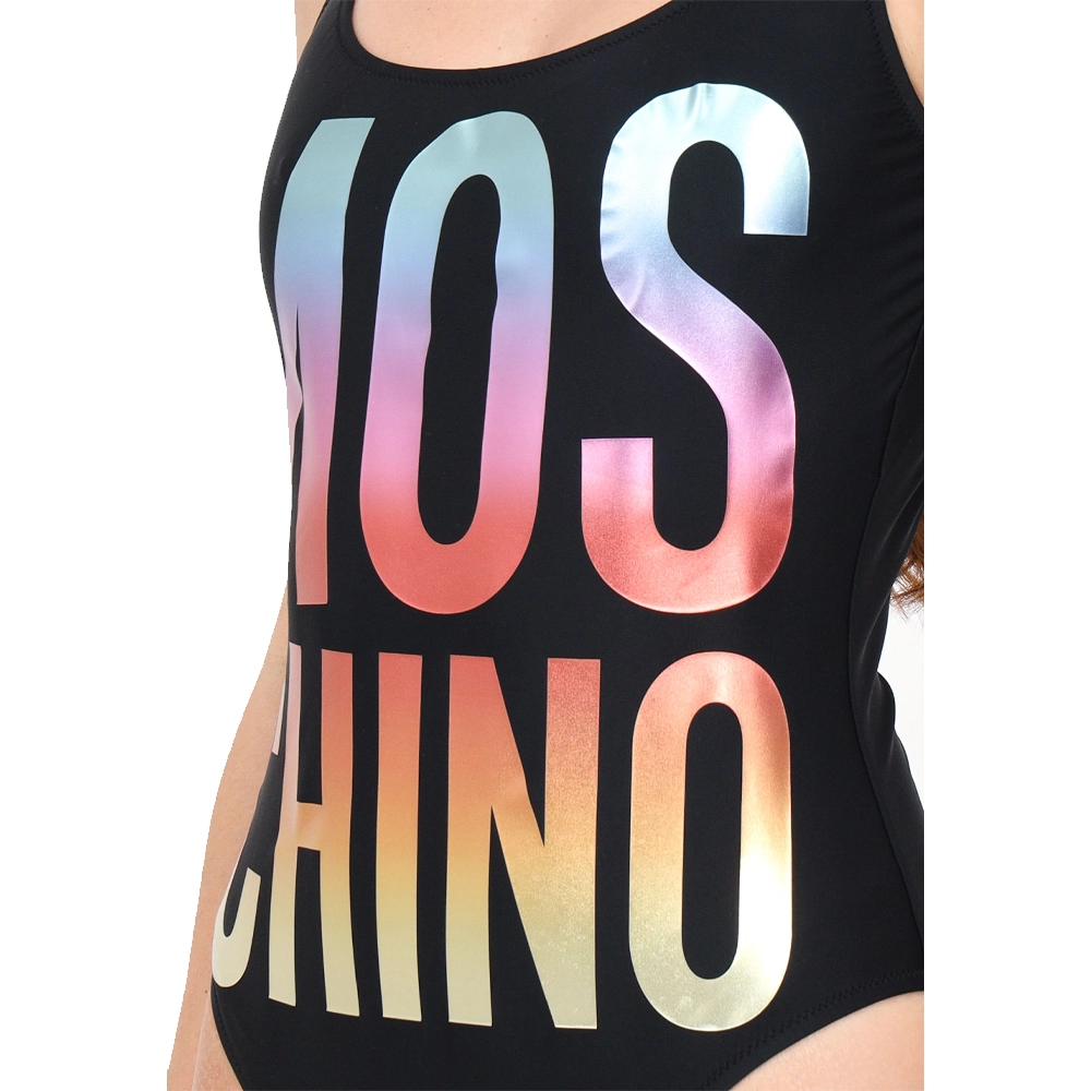 Il monokini da donna nero di Moschino con rainbow logo è l’emblema dell’eleganza e dello stile iconico che caratterizza il marchio. Con la sua stampa maxi logo shiny con sfumatura rainbow e gli accenti laminati, questo costume intero è perfetto per chi cerca un look sofisticato e di tendenza sulla spiaggia o in piscina.