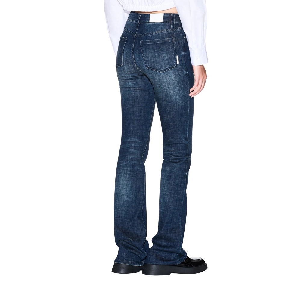 Un’ode allo stile anni ’70, rivisitata con un tocco contemporaneo. Questi jeans flare in denim indaco ultra stretch abbracciano la silhouette per poi aprirsi elegantemente sulla gamba, creando un movimento fluido e dinamico. Perfetti per la donna moderna che ama esprimere la propria individualità con un capo iconico e confortevole, ideale per look casual-chic diurni e serali.