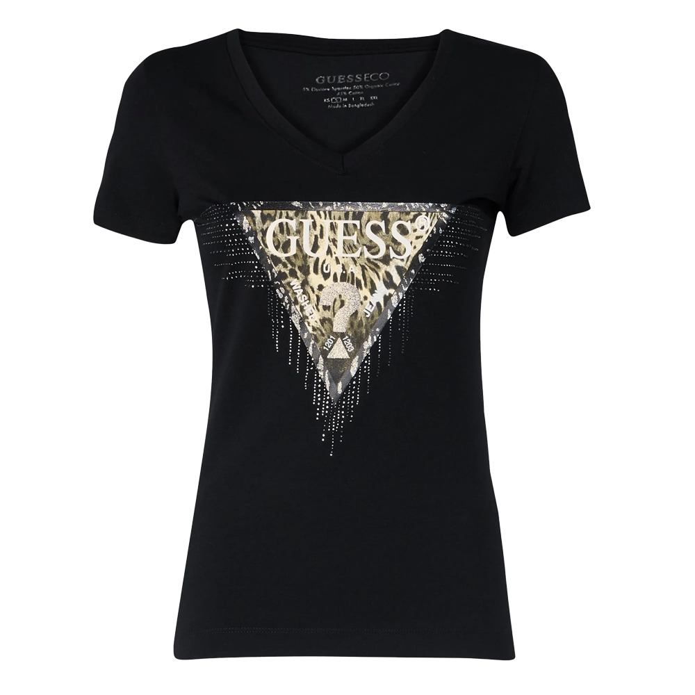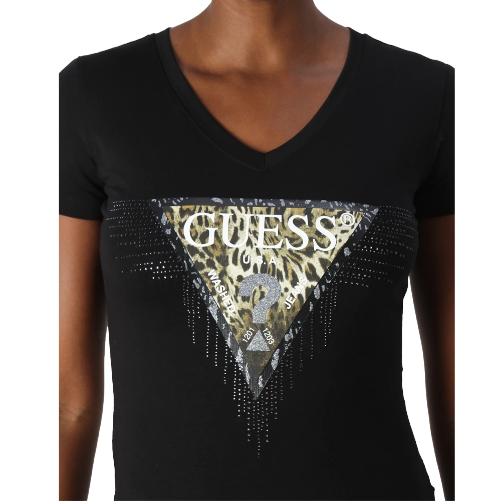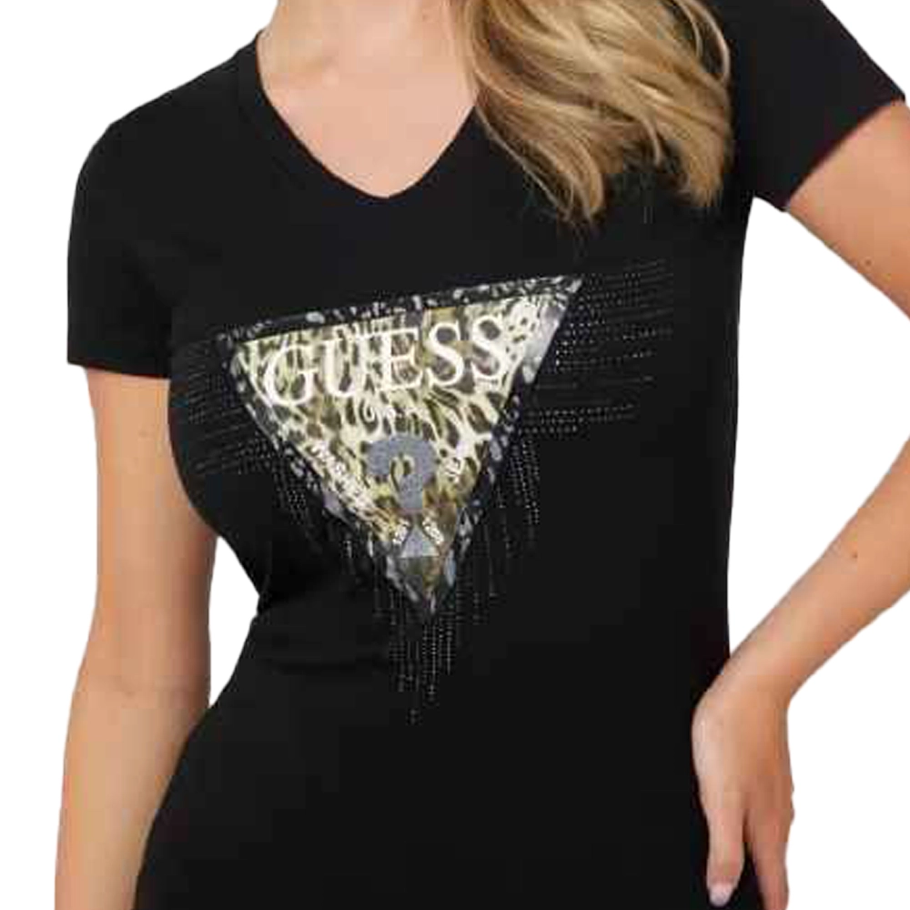 Guess Maglia donna Logo Triangle Tiger W4BI18 J1314 JBLK Nero