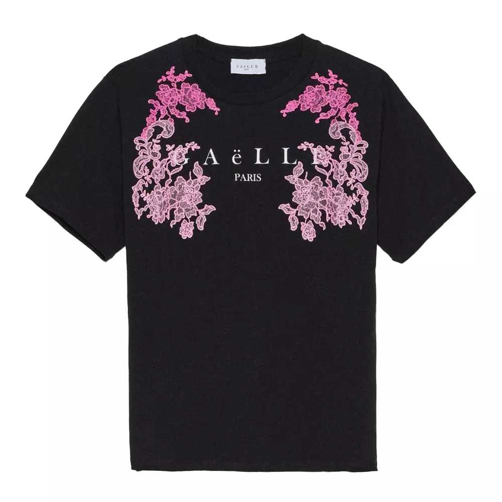 Gaelle t shirt donna con stampa e ricamo GBDP16960 Nero