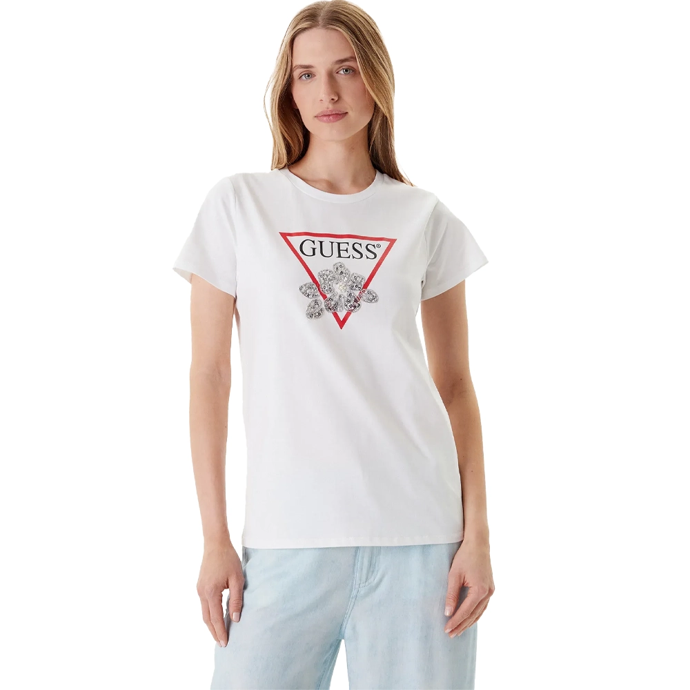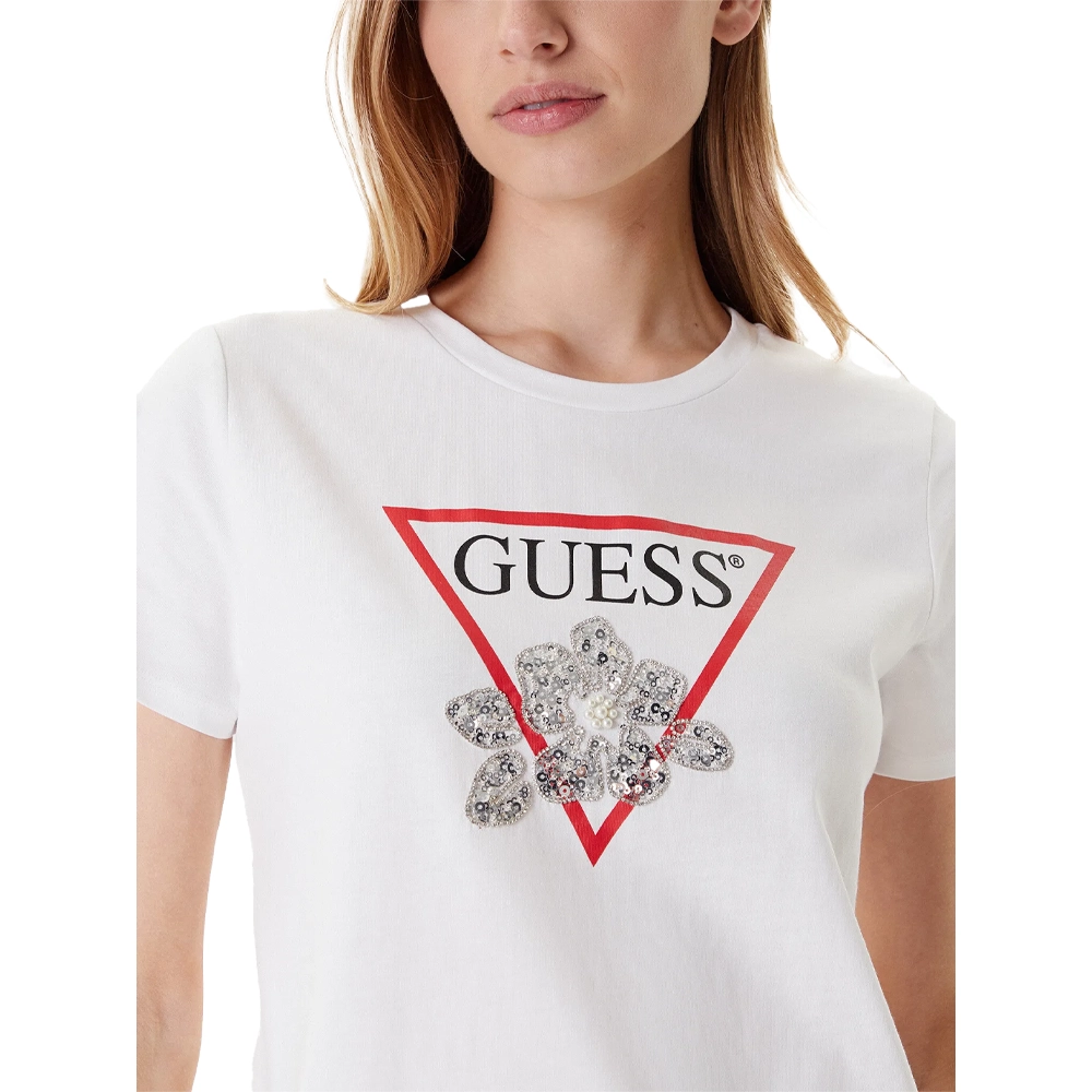 Guess T-shirt Flower Bling W5YI38 I3Z14 G011 White