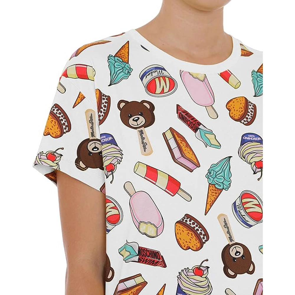 Moschino T shirt donna A0707 9413 1001 ICE CREAM PRINT White STRETCH JERSEY