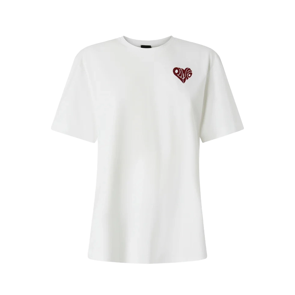 Pinko T shirt Strepitoso Jersey logo strass 105526A33I ZR2 Bianco rosso