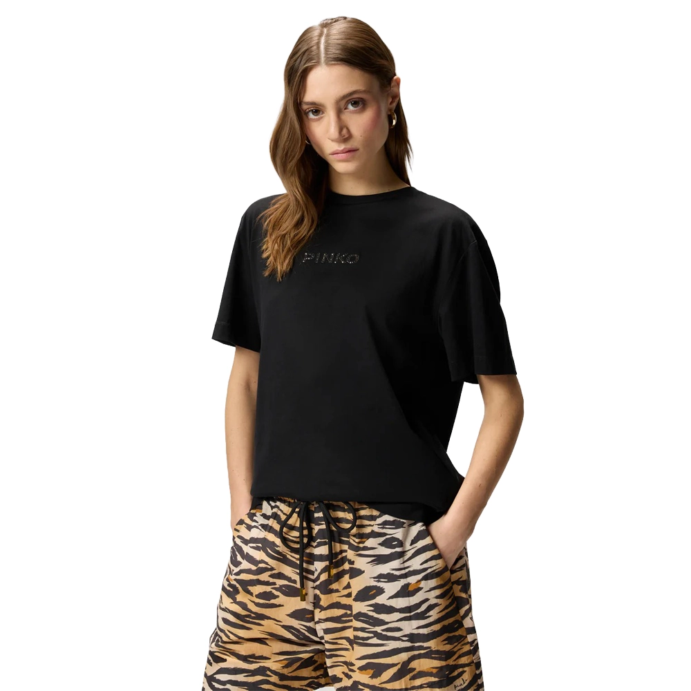 Pinko T shirt Strepitoso Jersey logo strass 105526A33S Z99 Black