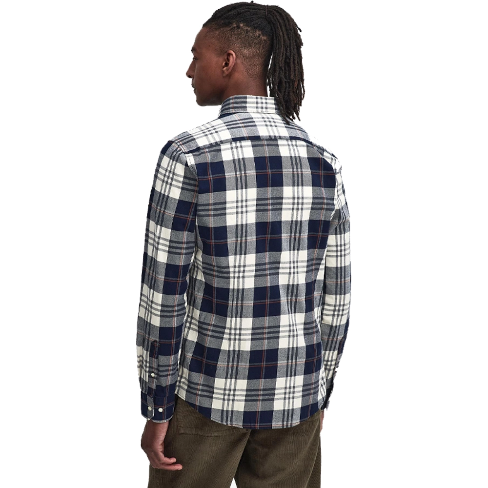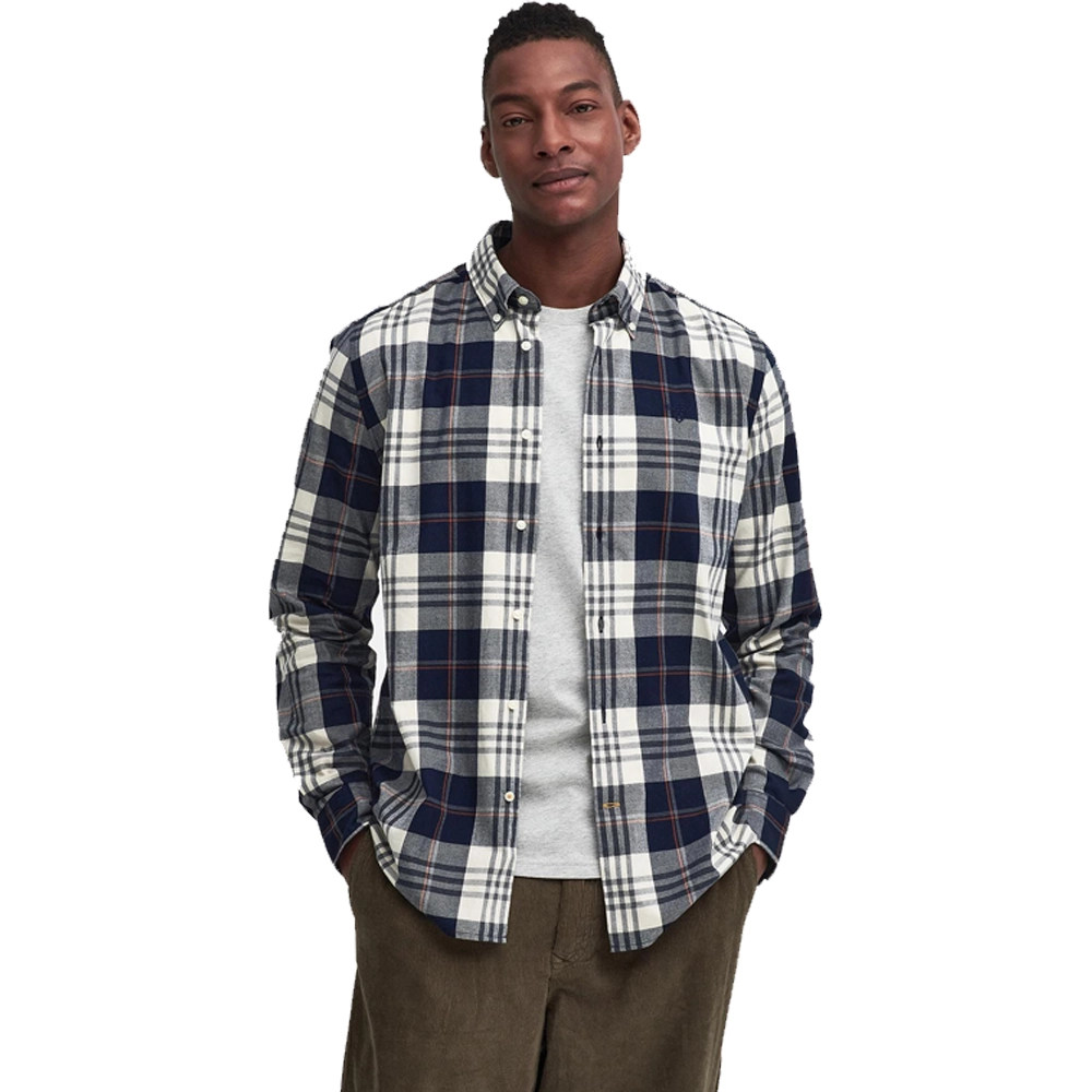 La camicia Edgar presenta un taglio sartoriale, studiato per adattarsi alla silhouette maschile in modo elegante ma non troppo aderente. Tra i dettagli di spicco c’è il colletto button-down, che non solo aggiunge un tocco di eleganza, ma conferisce anche praticità, mantenendo il colletto in posizione durante tutta la giornata. Il logo a scudo ricamato sulla parte superiore del petto è un dettaglio distintivo che sottolinea la qualità e l’autenticità del marchio Barbour, aggiungendo un tocco di stile inconfondibile.