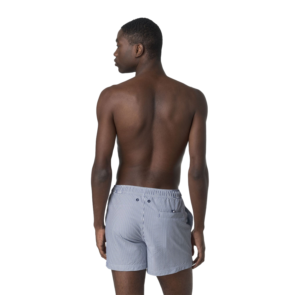Il K-Way HAZEL MID STRIPES BEACH K8141KW B0J WHITE BLUE è un costume da bagno da uomo dal design essenziale e versatile. Questo modello di boxer corto è realizzato in tessuto seersucker con motivo a righe ad asciugatura rapida, garantendo comfort e stile durante le giornate estive.