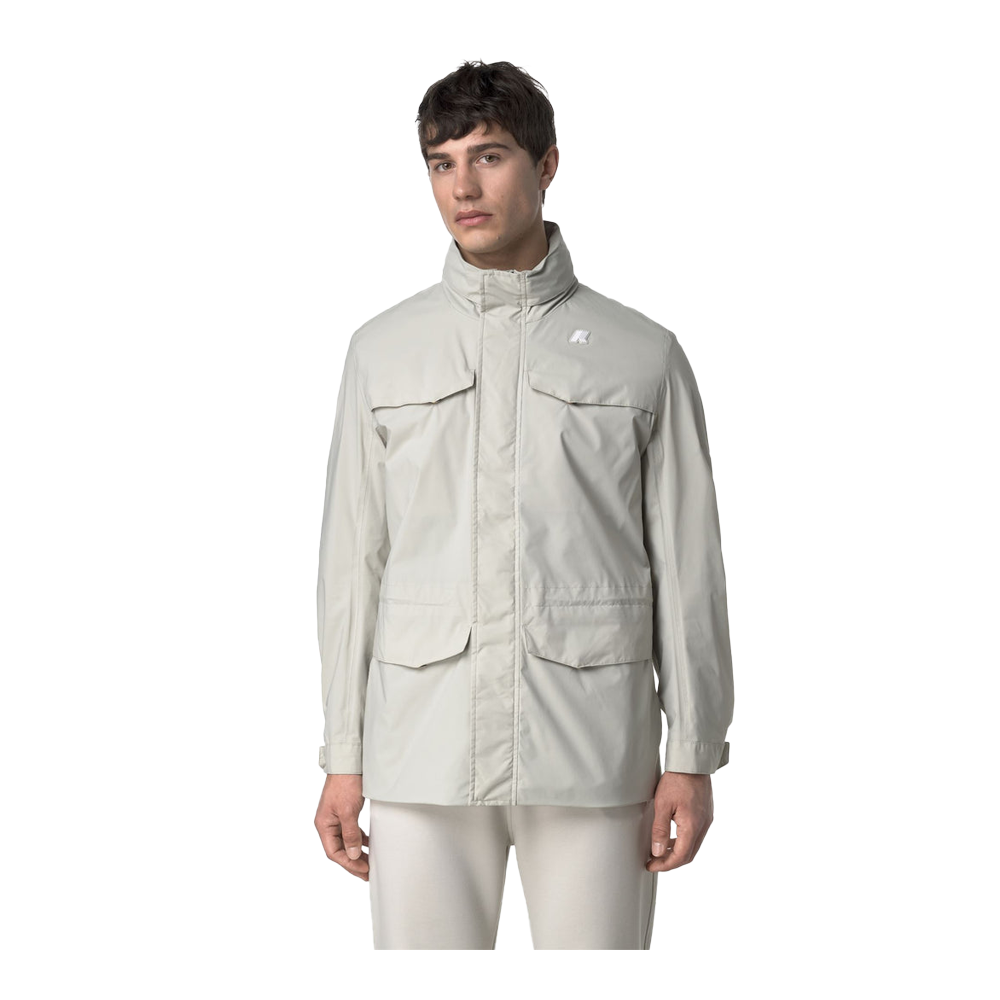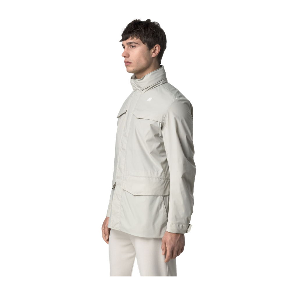 La giacca K-Way MANUEL STRETCH NYLON JERSEY BEIGE è un capo d’abbigliamento maschile che unisce funzionalità e stile. Ispirata alla classica field jacket, questa giacca corta è realizzata in nylon stretch impermeabile, antivento e traspirante, garantendo protezione e comfort in diverse condizioni climatiche.