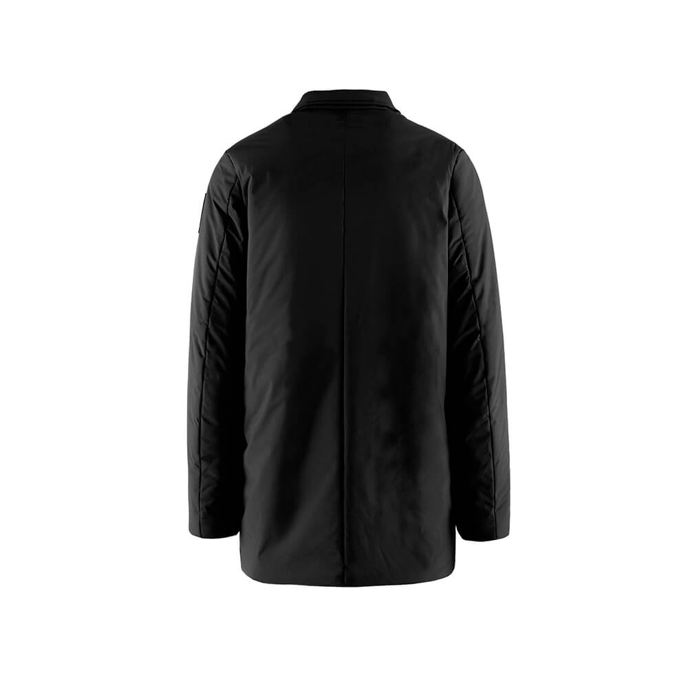 Overcoat con colletto, dal peso ultra leggero, soffice al tatto. Linea dritta. 100% poliestere ad alta densità – smerigliato – mano seta – resistente all’acqua (testato per 10000 colonne d’acqua). Imbottitura sintetica, in Thermore® EVOdown®, ultra leggera, traspirante, ad alto rendimento termico.Bottoni a vista con asole. Tasche laterali con pistagna.Lunghezza 86 cm (misura davanti spalla-fondo per taglia L).