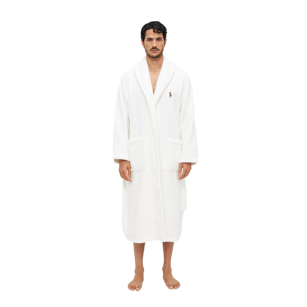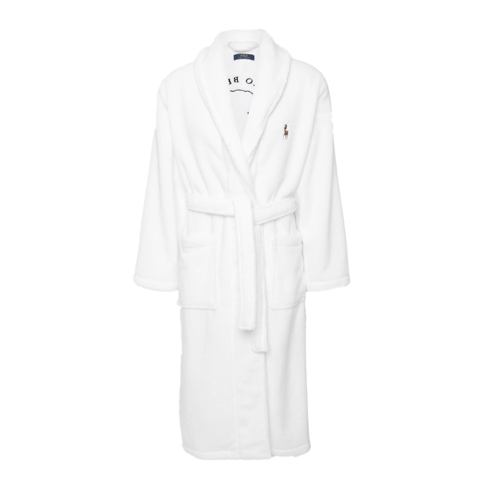 Il colore bianco dell’accappatoio non solo evoca una sensazione di pulizia e freschezza, ma lo rende anche facilmente abbinabile ad altri accessori da bagno. Il logo Polo Ralph Lauren ricamato sul petto aggiunge un elemento distintivo, sottolineando la qualità e l’attenzione ai dettagli tipici del brand.