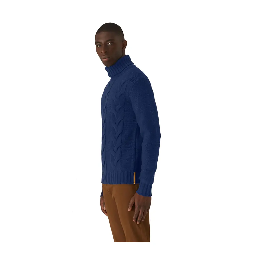 Maglione K-way realizzato completamente in lana, ha una vestibilità regolare, presenta un collo alto e bordi a costine, assicurando una vestibilità aderente. Dettagliato con un maxi disegno a trecce in rilievo sul davanti e una piccola decorazione a righe sull’orlo per un inconfondibile tocco K-way.