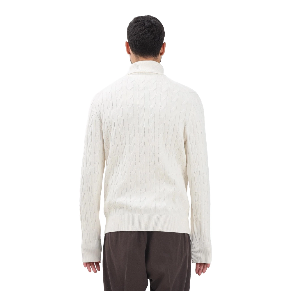 Il classico dolcevita in maglia intrecciata è realizzato in puro cotone pettinato, per sfoggiare uno stile iconico anche nelle giornate più fredde.