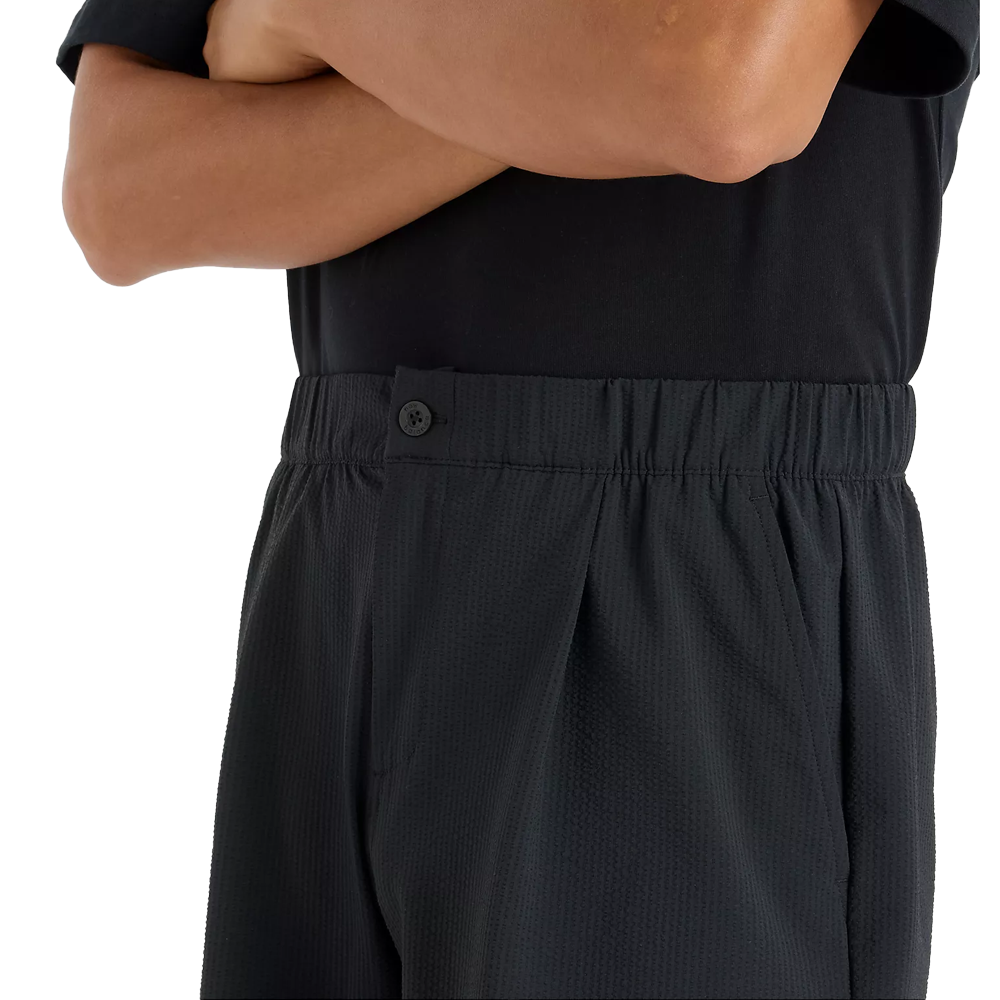 Innanzitutto, il tessuto seersucker conferisce una texture distintiva e una sensazione di freschezza sulla pelle. La presenza della tecnologia NB DRY assicura una rapida asciugatura, mantenendo il corpo asciutto anche durante le attività più intense. Il design include una vita elasticizzata con chiusura frontale a bottone e zip, garantendo una calzata sicura e personalizzata. Le tasche a filetto laterali e la tasca posteriore offrono spazio sufficiente per gli oggetti essenziali, mentre il logo NB ricamato tono su tono aggiunge un tocco di eleganza discreta.