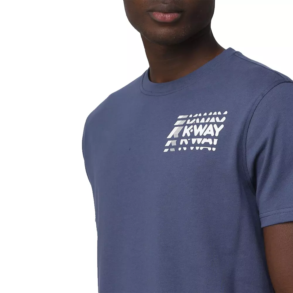 K-Way Uomo T Shirt ODOM MULTI LETTERING K4127ZW 732 BLUE INDIGO