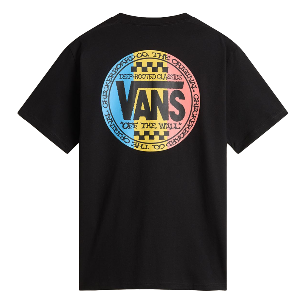 Il design della t-shirt è caratterizzato da un collo rotondo con bordo rinforzato e maniche corte, elementi che conferiscono un aspetto classico e senza tempo. Sul fronte e sul retro, spiccano grafiche stampate che richiamano l’estetica vintage tipica del marchio Vans, aggiungendo un tocco di originalità al capo.