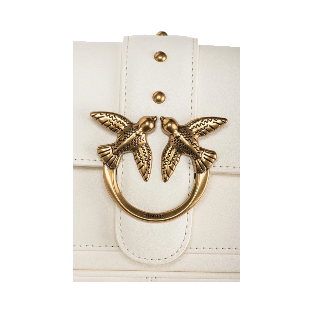 La Pinko Love pocket , realizzata in morbida pelle seta, è un capolavoro di eleganza e funzionalità. La chiusura con baccello in pelle e piccole borchie, abbinata alla fibbia in metallo Love Birds Diamond Cut, dona un tocco distintivo a questa borsa straordinaria.