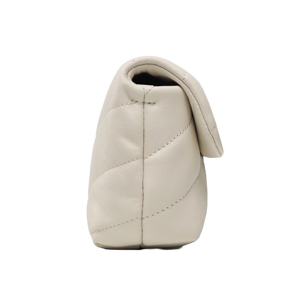Baby Love Bag Puff in morbida nappa con maxi trapuntatura obliqua. La chiusura è completata dall’iconica fibbia in metallo Love Birds Diamond Cut. L’interno è foderato in microfibra scamosciata e comprende tasca a parete chiusa con zip. Completa di tracolla sottile a catena in metallo.