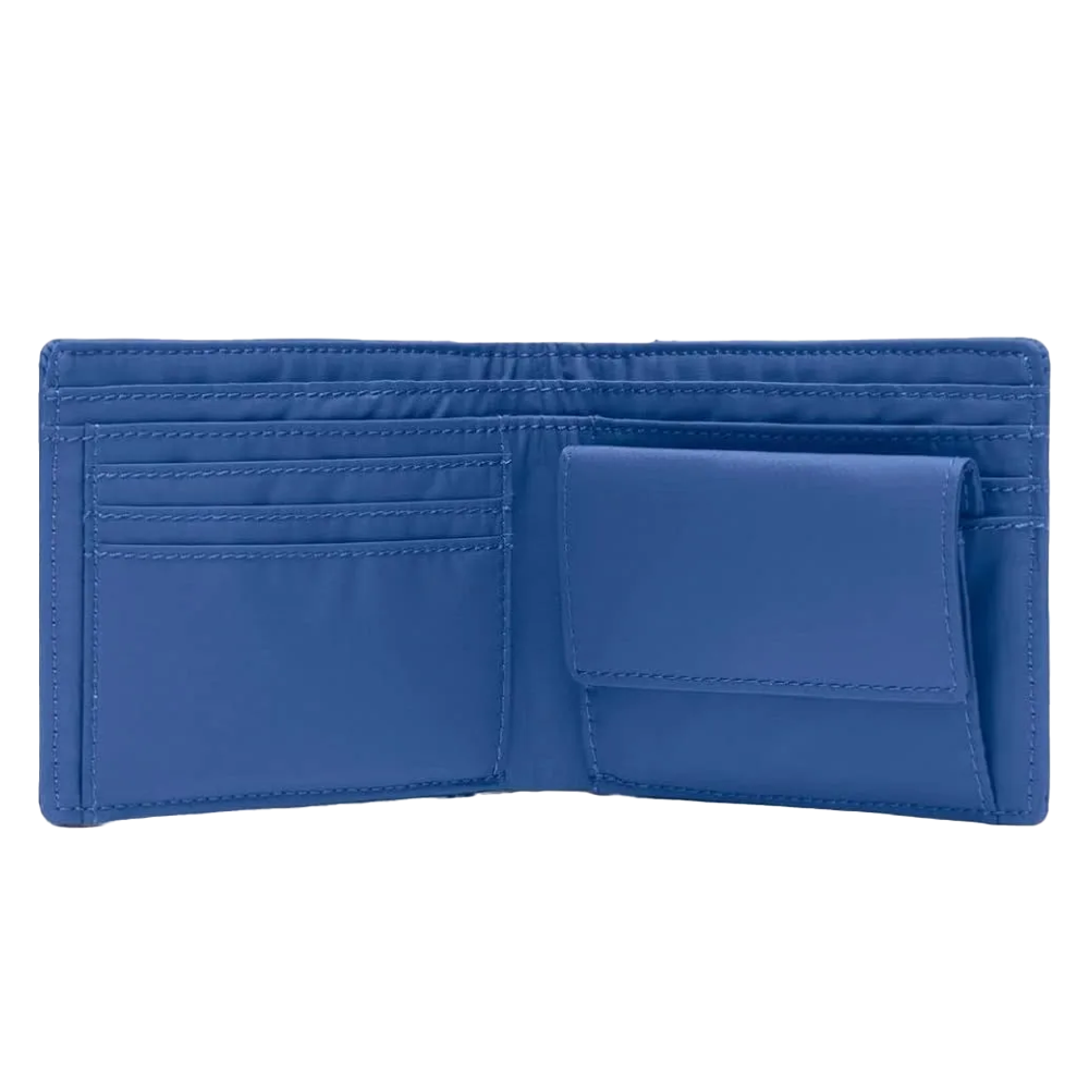 All’interno, troverai scompartimenti dedicati per le tue carte e le tue banconote, mantenendole organizzate e facili da trovare. Inoltre, il pratico scompartimento interno porta monete, richiudibile con un flap e un bottone, ti consente di tenere al sicuro le tue monete senza rischiare di perderle.