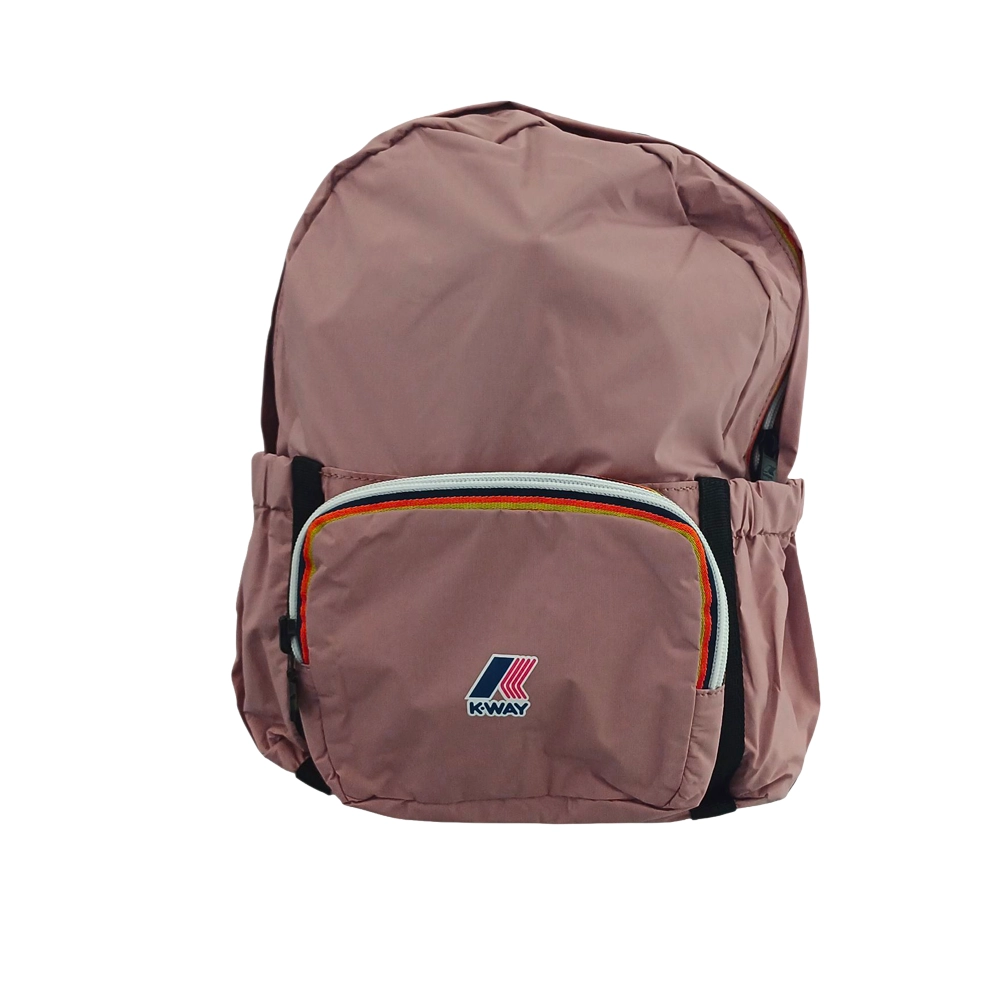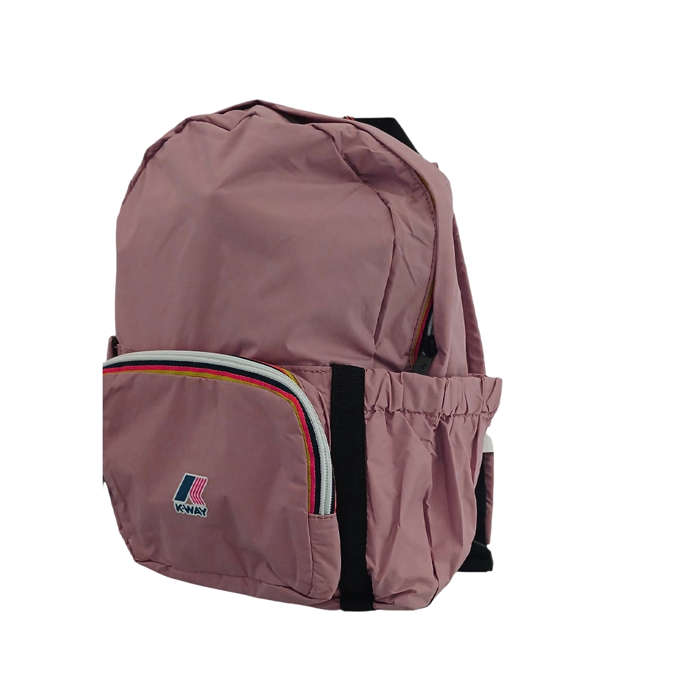 La chiusura con zip assicura che il contenuto dello zaino rimanga protetto. Il logo K-Way posizionato sulla parte frontale sottolinea l’autenticità e la qualità del prodotto.