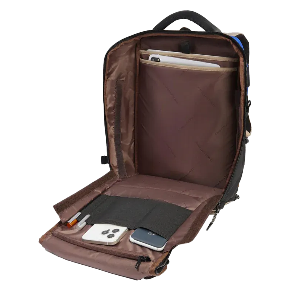 Il Piquadro Zaino bici porta pc 14″ CA5999S125/BEBL è un accessorio innovativo, pensato per chi ama muoversi in città con stile. Prima di tutto, è realizzato in tessuto riciclato che garantisce leggerezza (solo 825 g) e sostenibilità (indice PQ Recycled 63 %). Inoltre, misura 26 × 40 × 12 cm, offrendo una capienza di 22 litri, ideale per l’uso quotidiano.
