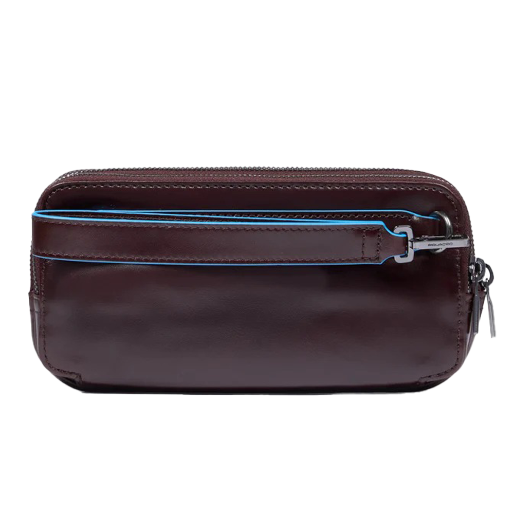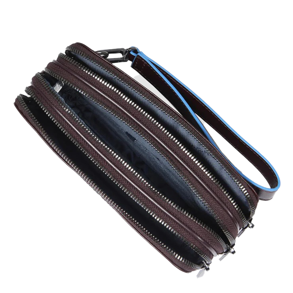 Il design compatto e lineare dell’astuccio lo rende perfetto per l’uso quotidiano. Le sue dimensioni permettono di riporlo comodamente in una borsa o di portarlo a mano grazie alla polsiera rimovibile. I tre scomparti principali con chiusura a zip offrono spazio sufficiente per organizzare al meglio i propri effetti personali. Le dodici fessure per carte di credito aggiungono un ulteriore livello di praticità, permettendo di conservare le carte in modo sicuro e accessibile.