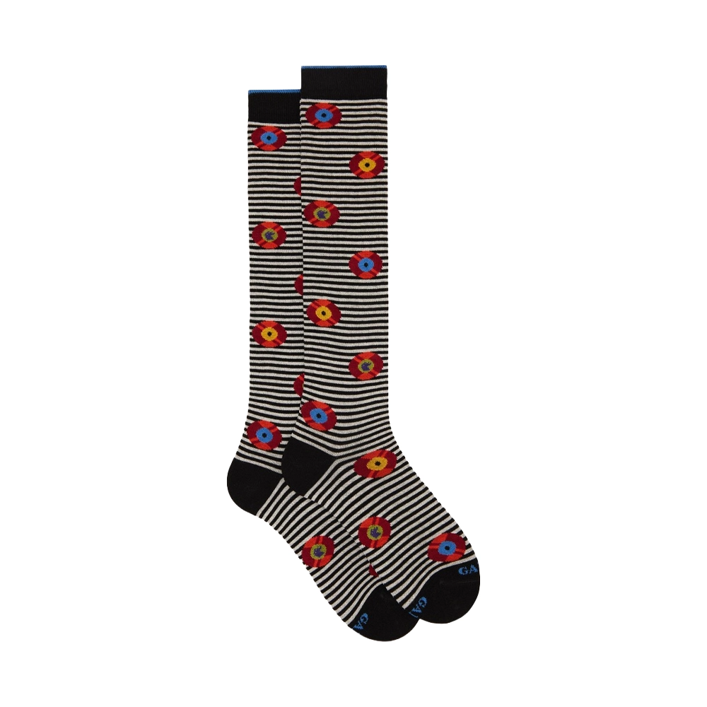 Calze lunghe da uomo in cotone nero, decorate con una vivace fantasia di dischi in vinile. Perfette per aggiungere un tocco vintage e originale al tuo stile. Un capo firmato Gallo, eccellenza italiana dal 1927.