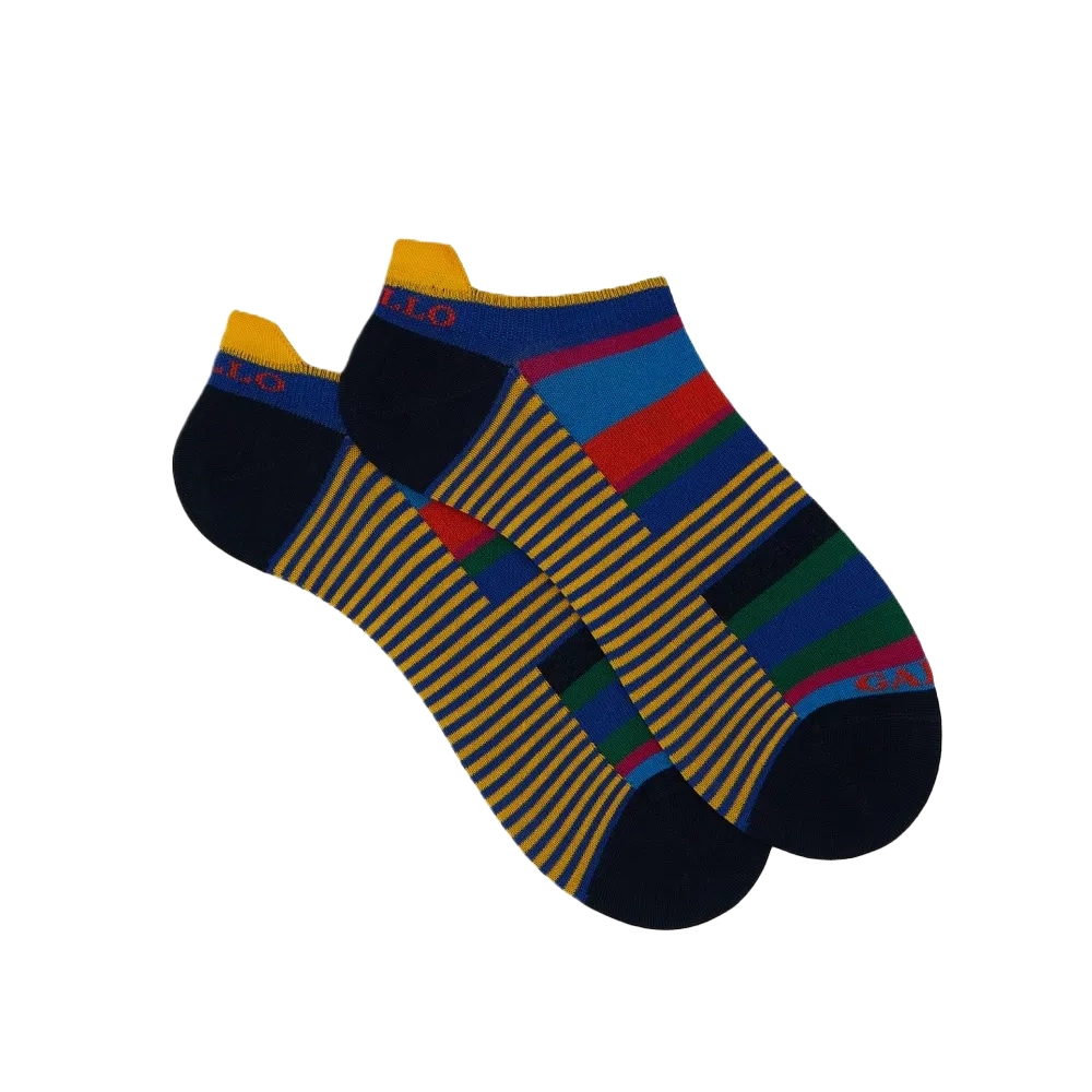 Il design distintivo presenta una fantasia a righe multicolore, che aggiunge un tocco di vivacità e originalità al guardaroba maschile. Questa caratteristica consente di abbinare facilmente i fantasmini a diversi stili di abbigliamento, sia sportivi che casual. Inoltre, la scritta “Gallo” è elegantemente posizionata sulla punta, sottolineando l’autenticità e la qualità del prodotto.