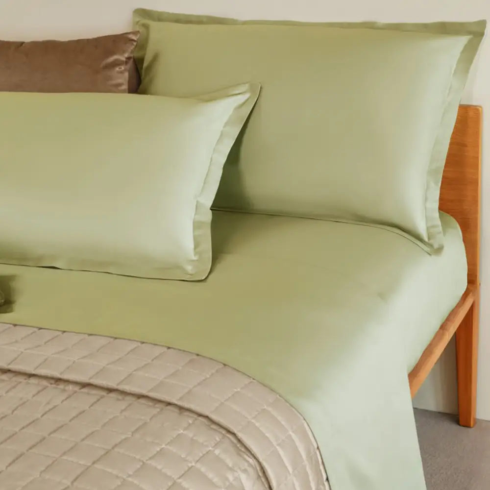 Completo letto 100% raso cotone 300TC tinta unita sotto con angoli e federe con 4 volants da cm.3.