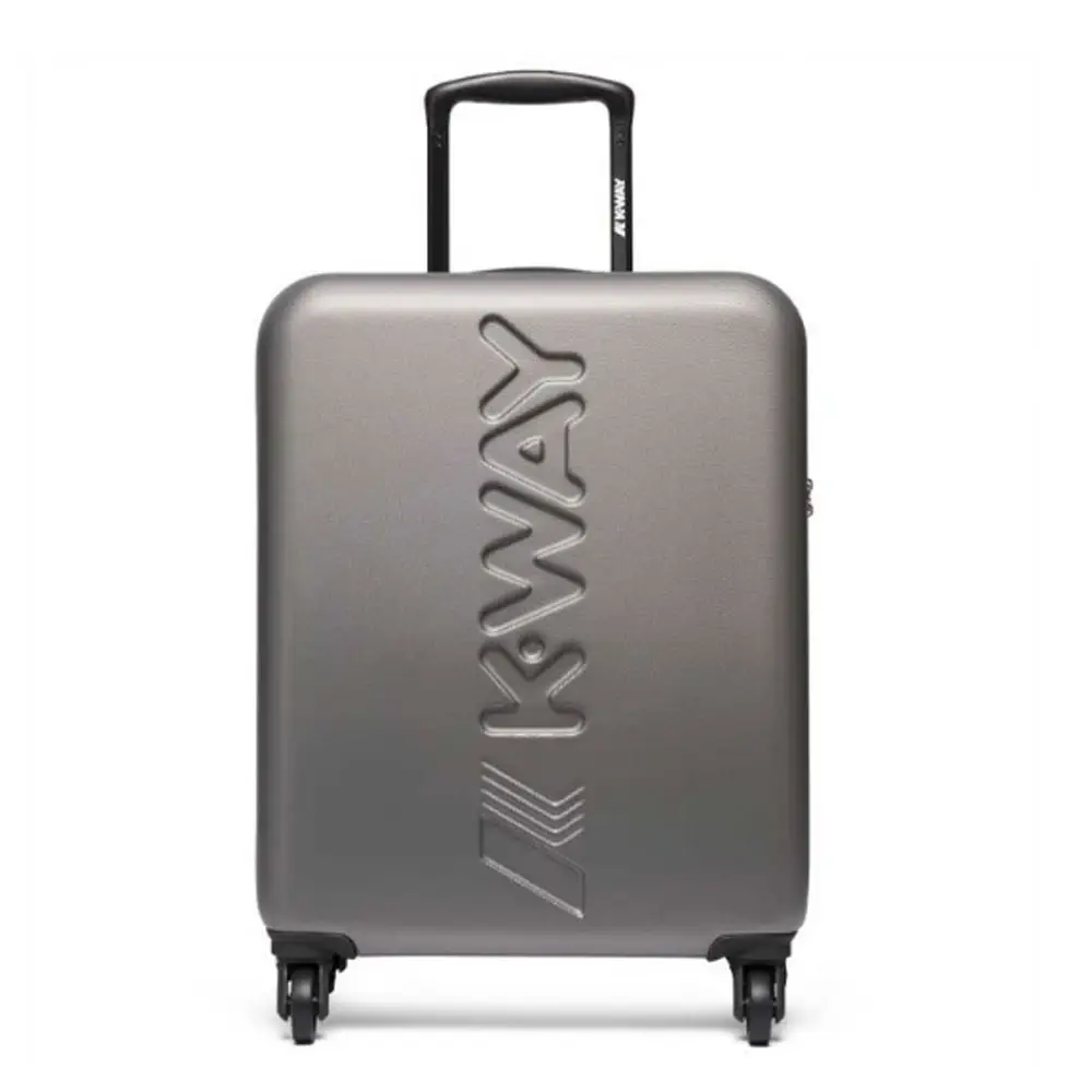 Realizzato in polipropilene, il trolley offre una struttura robusta e resistente agli urti, proteggendo efficacemente gli effetti personali durante il trasporto. La finitura in Grigio Metallizzato conferisce un aspetto elegante e contemporaneo, mentre il maxi logo K-Way stampato sul davanti aggiunge un tocco distintivo e riconoscibile.