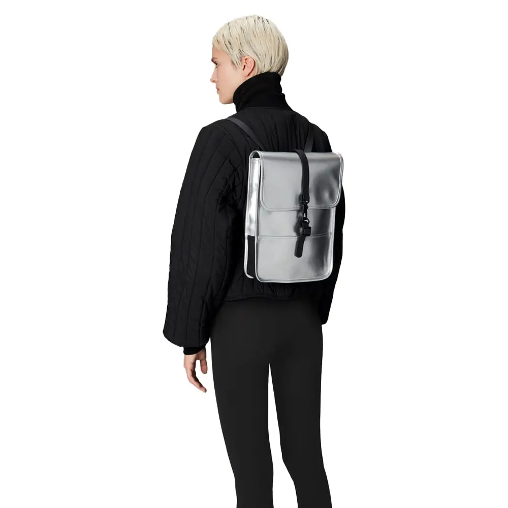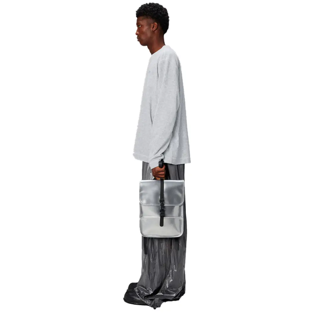 Il Backpack Micro di Rains, nella sua elegante versione color argento, è l’accessorio perfetto per chi cerca uno zaino di piccole dimensioni ma ricco di funzionalità. Ispirato al celebre modello Backpack Mini, il Backpack Micro offre una versione ancora più compatta, ideale per chi desidera portare con sé l’essenziale senza rinunciare allo stile.