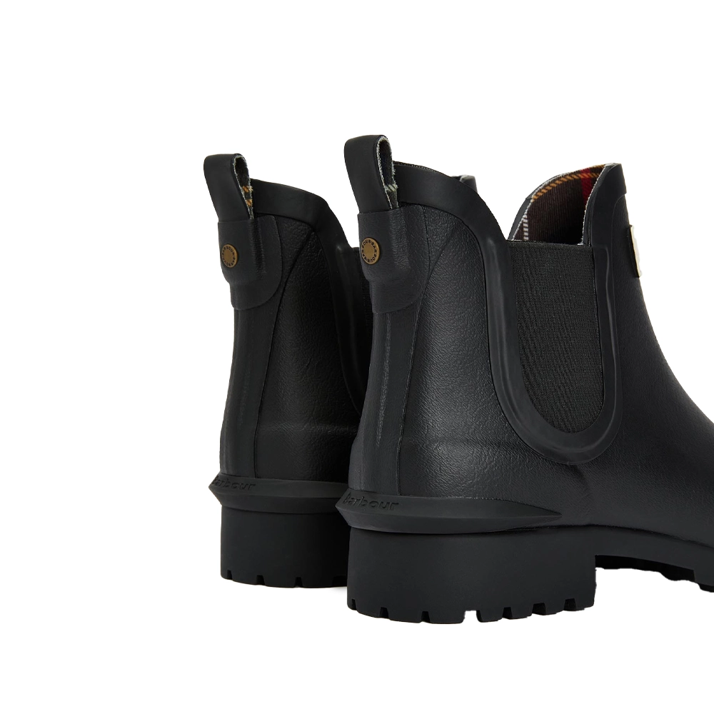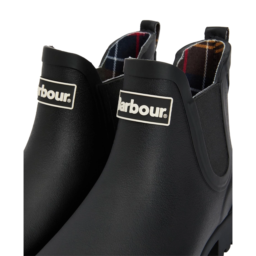 Una rivisitazione in chiave fashion del classico wellington, questo stivale in stile Chelsea presenta la fodera tartan tipica di Barbour e una suola in stile commando. Rifiniti con il logo Barbour all’esterno.