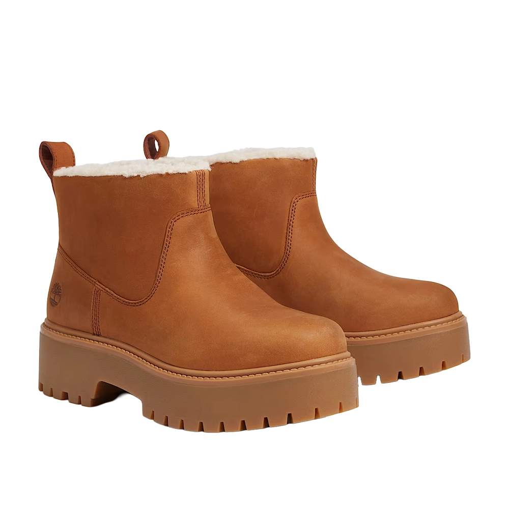 Lo stivale foderato con plateau da donna Stone Street in pelle Premium Leather di Timberland® assicura la massima comodità con un design robusto. La fodera in tessuto ReBOTL™ di materiale sintetico contiene almeno il 50% di plastica riciclata, mentre il 10% della gomma nella suola proviene da aziende impegnate nell’agricoltura rigenerativa. Il pratico design senza lacci consente di indossare il modello più facilmente, mentre la soletta OrthoLite® offre un sistema di gestione dell’umidità, un’azione antimicrobica per il controllo degli odori e un’ammortizzazione di lunga durata. L’intersuola in poliuretano e il rinforzo in acciaio assicurano un supporto affidabile all’arco plantare su qualsiasi terreno.