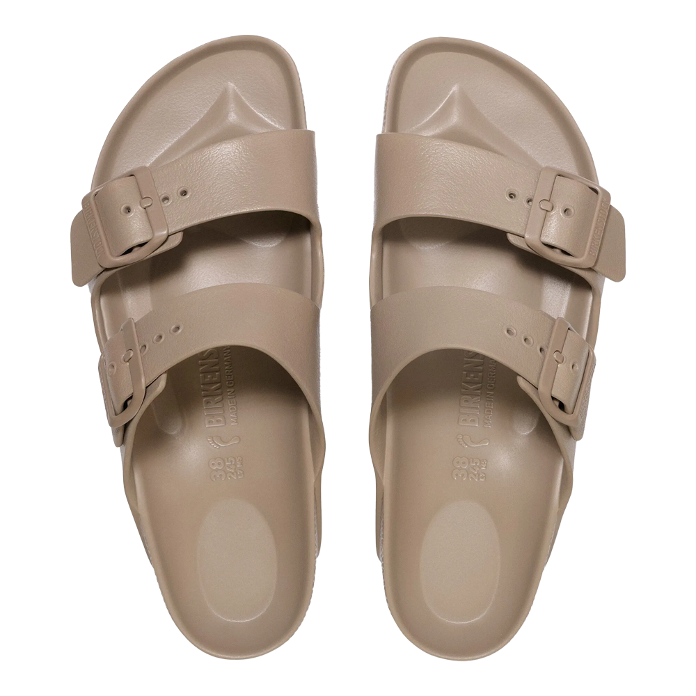 Sandali Birkenstock Arizona EVA grigio taupe: leggeri, resistenti all’acqua, anatomici e perfetti per estate, piscina o tempo libero.