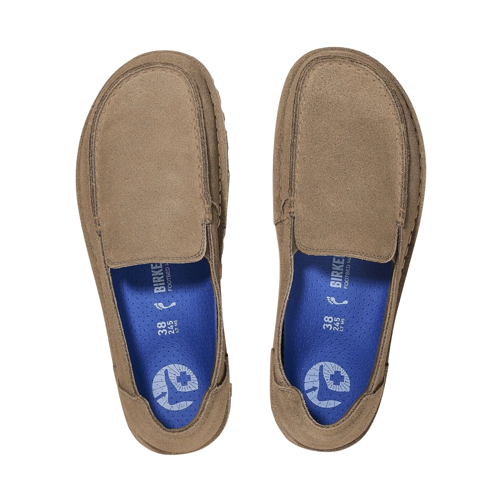 BIRKENSTOCK Utti è una scarpa in stile mocassino dal design senza tempo. L’appariscente cucitura è una vera chicca. La morbida linguetta sul tallone aumenta la comodità di indosso ma permette anche di infilare e sfilare comodamente la scarpa. Il plantare Deep Blue è comodo e leggero e rende questa scarpa così confortevole che può essere indossata sempre senza problemi, anche in quelle giornate che non finiscono mai, piene di cose da fare. Perfetta per il prossimo viaggio, per lunghe passeggiate o per un giro in città. La tomaia è in pelle scamosciata particolarmente morbida che aderisce al piede come una seconda pelle.